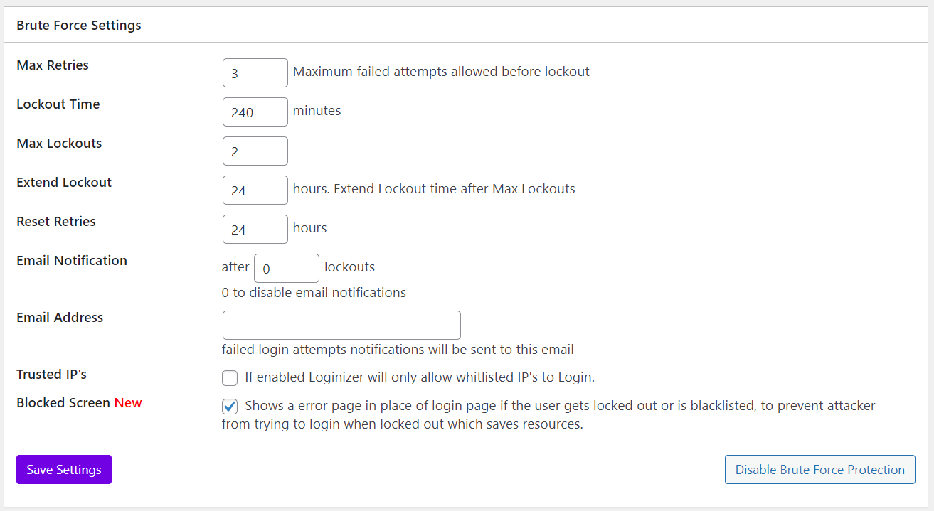 Brute Force Settings